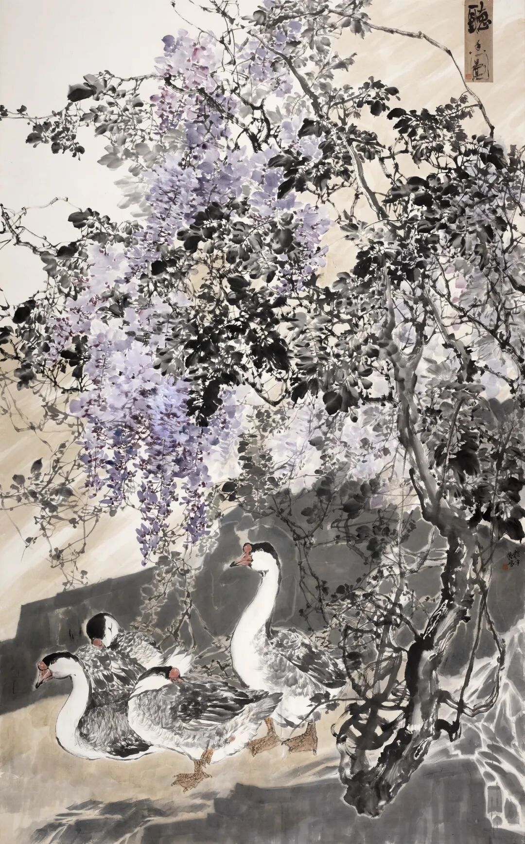 他并不满足于对自然的再现,而是更关注自然内部的“生长力量”。在他的画面中,花不只是花,鸟不只是鸟,枝干的盘曲、花簇的爆发、禽鸟的律动,构成了一种不断生成的生命现场。自然,不再是被观看的对象,而是一种正在发生的能量。