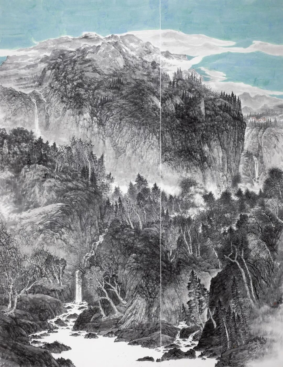 在传统水墨基础上,他强化色彩的表现力,以高饱和色块与墨骨形成对冲,使画面既有笔墨根基,又具有当代视觉冲击。