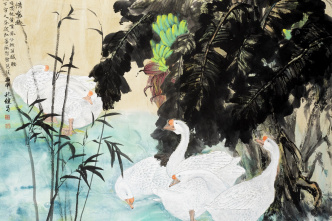 山间四时·心中丘壑——韦明山水画展中国山水画,从来不只是自然景物的简单再现,它是文人心灵的栖息之地,是“外师造化,中得心源”的哲学映照。本次展览以“山间四时·心中丘壑”为主题,旨在引领观众步入画家韦明笔下那片源于自然、又归于内心的山水世界。观其《瑞雪兆丰年》,层叠山峦如乐章般起伏,淡墨积雪与赭石暖调交织,既现冬日静谧,又暗藏春之萌动;《秋山无尽》则以古拙的笔墨交响,将秋山的沧桑与天人合一的哲思熔铸一炉;而《风暖鸟啼花影重》更以写意