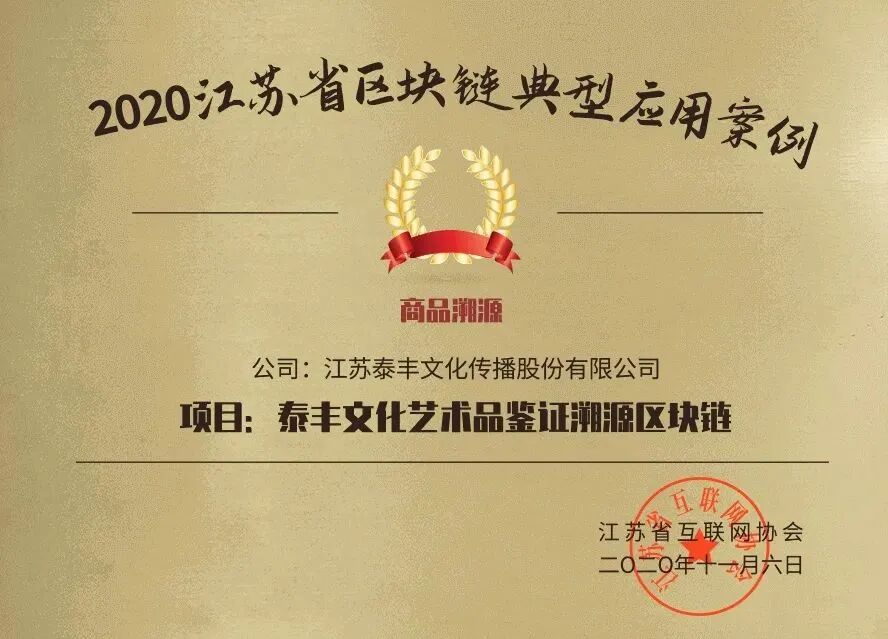 2020年10月,江苏泰丰文化传播股份有限公司艺术品鉴证溯源区块链存证系统获得国家网信办备案,2022年3月,江苏丰链数字科技有限公司“丰链艺树”获得国家网信办备案。