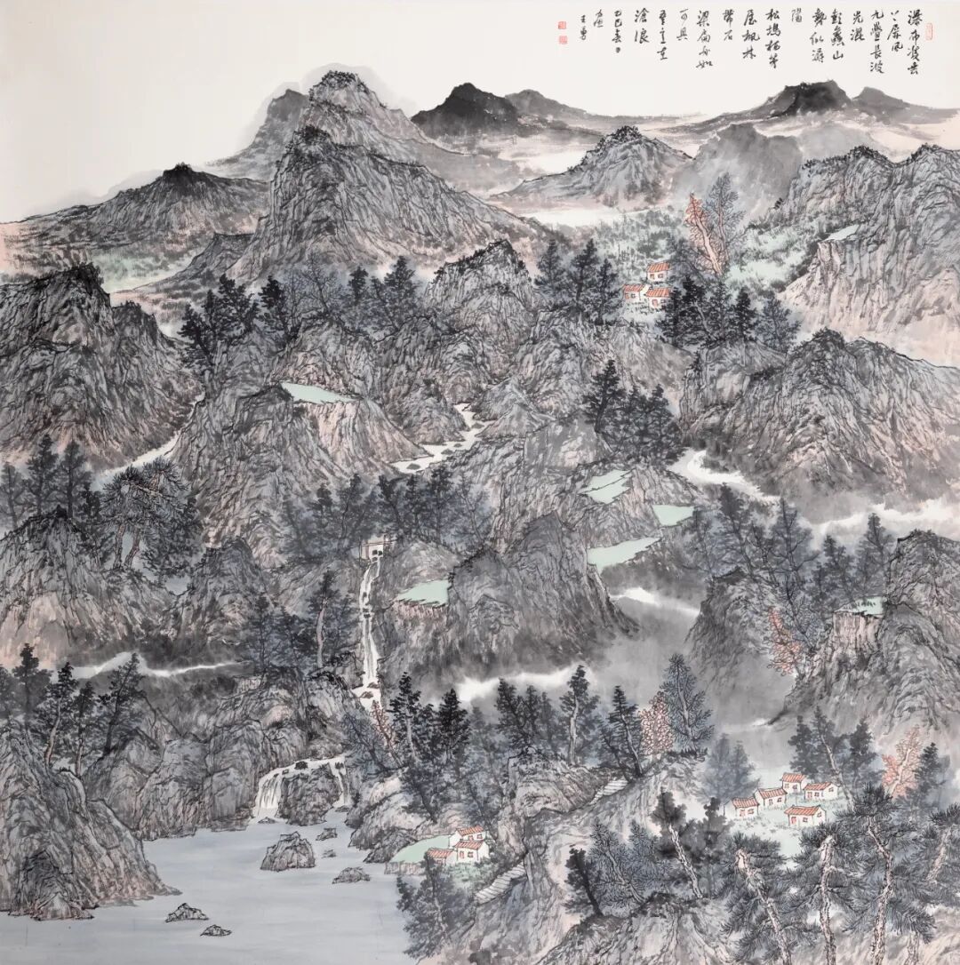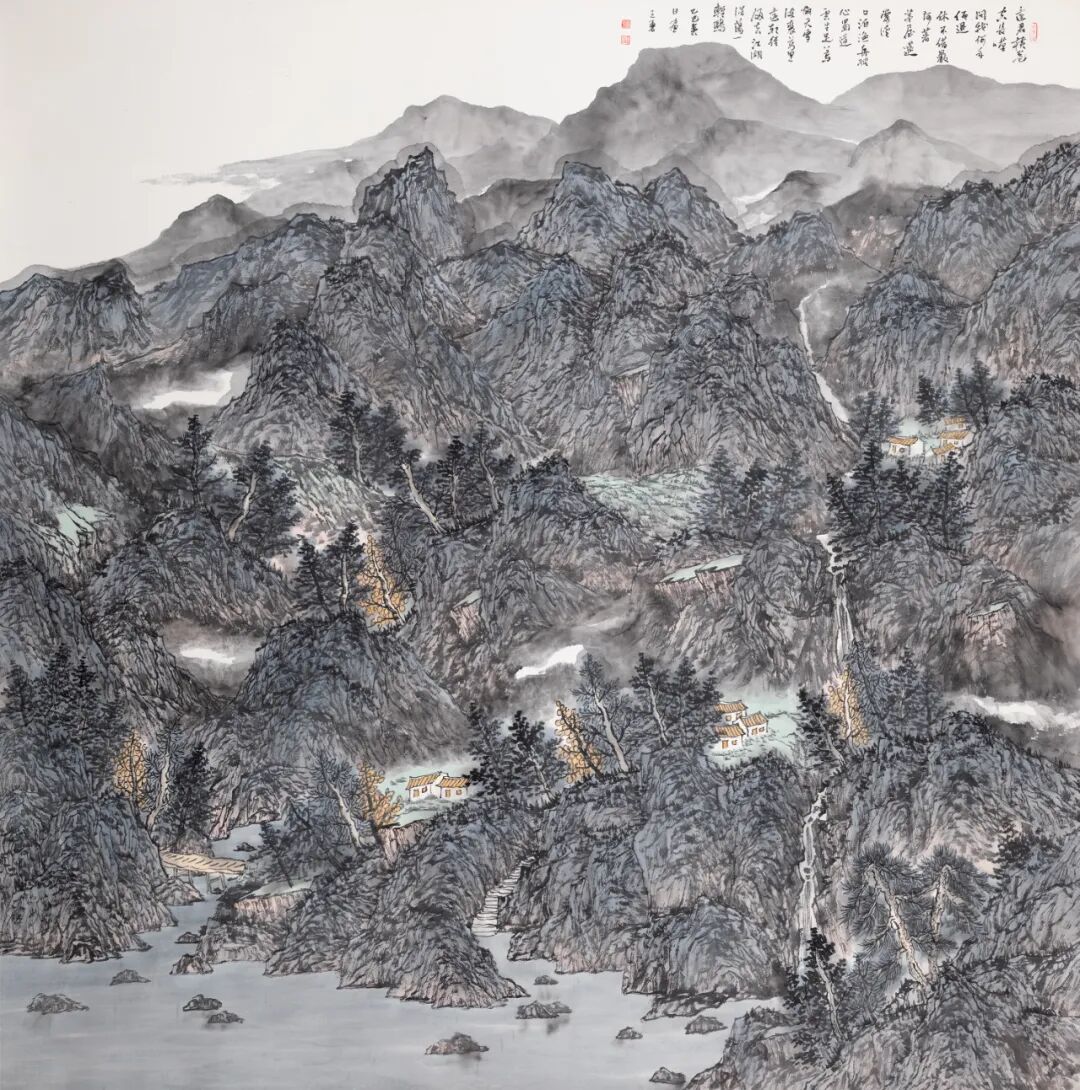 王勇深谙皴法即山石语言的古训,以更细腻的感知重构自然与笔墨的关系,从焦墨干笔的苍劲到色釉交融的瑰丽,让千年笔墨在当下焕发温润光彩,成为当代山水风华的鲜活注脚。
