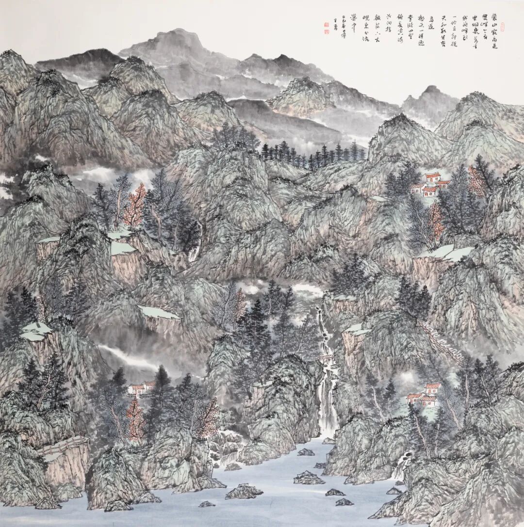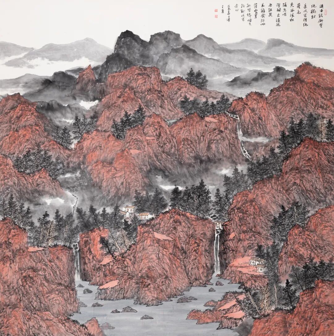 在以笔墨对山水进行深度解读的同时,王勇将创新的技法融入自身风格,精准捕捉山河印记中的地域特质,将地域的地理特征与文化记忆刻入皴痕,让山水不再是通用符号,而是有了鲜明的地域身份,让观者在笔墨中读懂山河的独特性格。