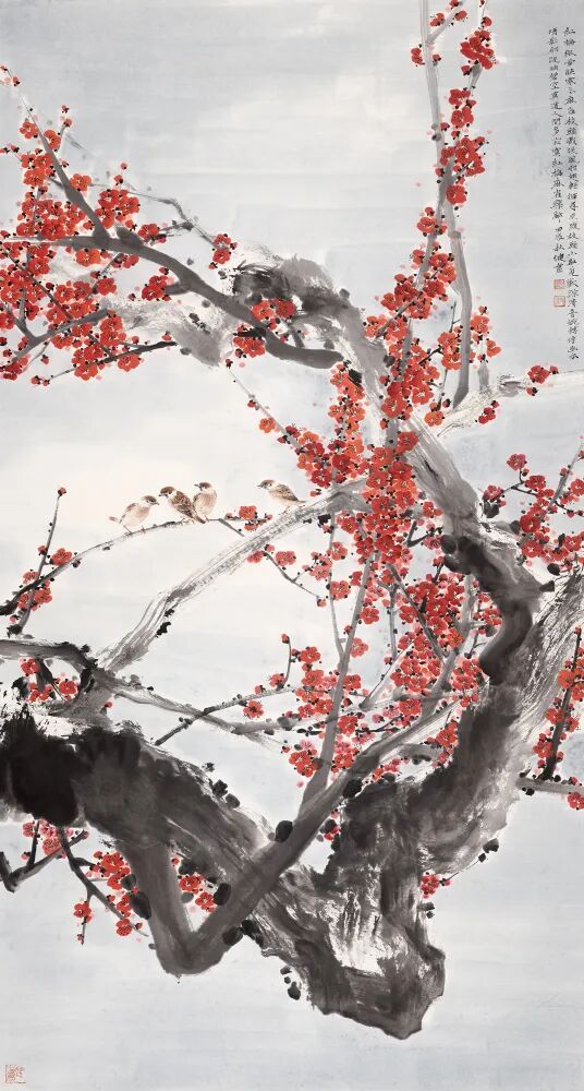 红梅麻雀乐融融